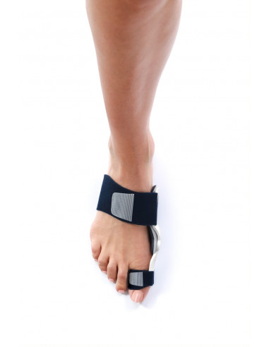 Rigid skena för att underlätta immobilisering och ge stöd under vila och på natten. Mjuk "memory foam"-kudde för att skydda knölen vid stortån från smärta vid tryck