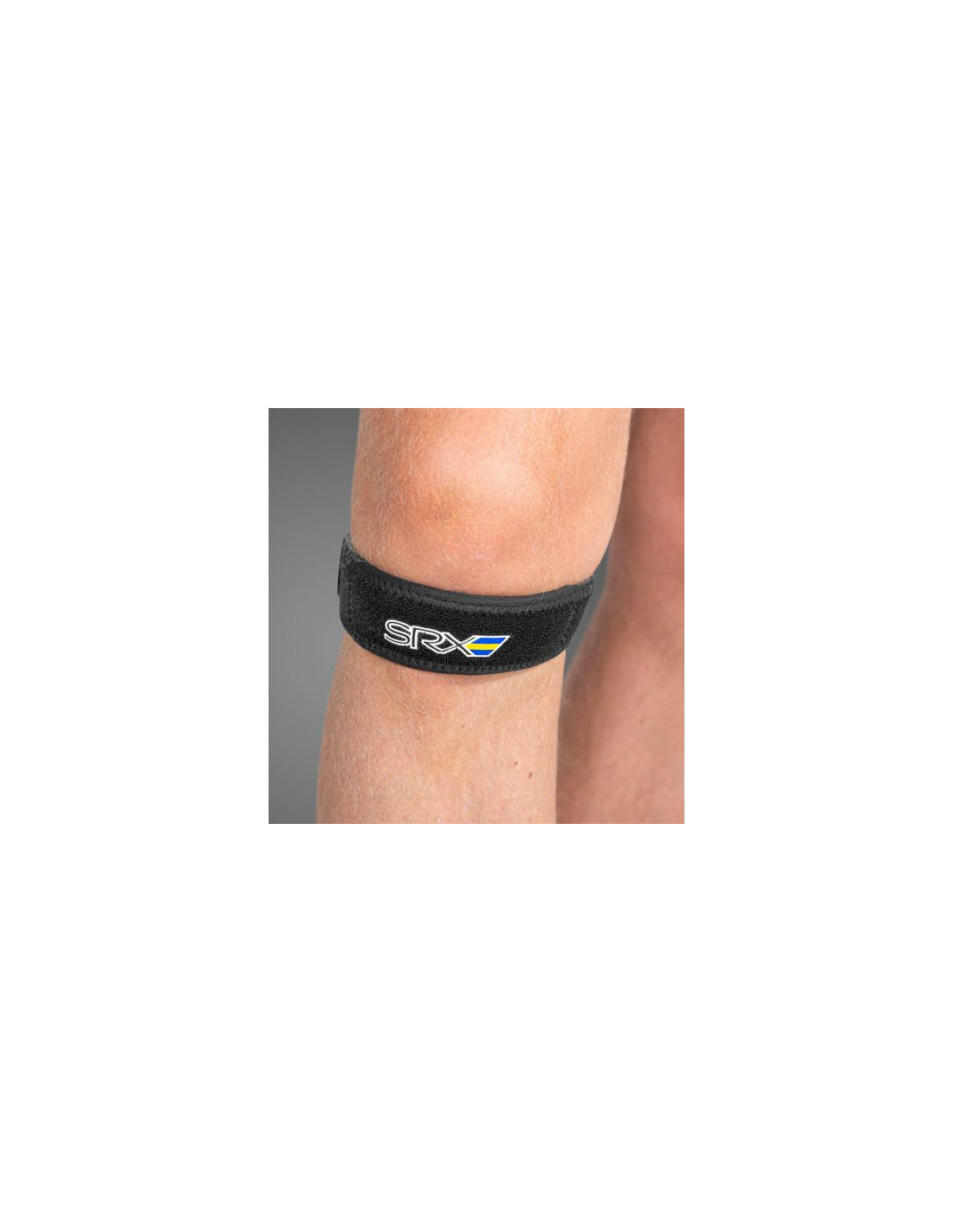 Denna modell är en enkel, flexibel och universell knästrap som är tillverkad av SRX®-material med en ovansida med mjukt kardborretyg. Designen gör den lämplig som enklare stöd vid problem från knäskålssenan. Kardborrejusteringen gör skyddet flexibelt och enkelt att applicera. Stödpelotten placeras över knäskålssenan och ger ett lättare stöd. Kompressionen justeras genom att spänna kardborren hårdare. Knäskyddet kan användas vid lokala inflammationer, vid lättare problem med hopparknä och vid Schlatterknäproblem.