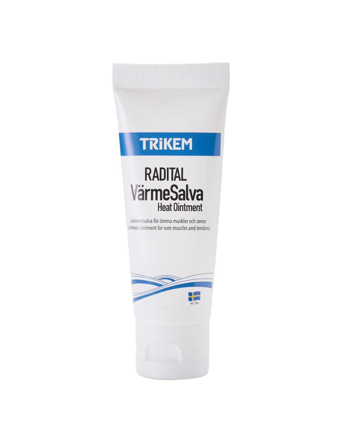 RADITAL Värmesalva är en värmande linimentsalva med en väl avvägd blandning av eteriska och värmande oljor. Långtidsverkande och välgörande på ömmande muskler och senor. RADITAL Värmesalva har samma grundformula som RADITAL Liniment, men här i en lättarbetad salva med svag härlig doft av kanel och kryddnejlika.